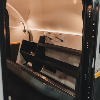 Backrest Storage hilft Ihnen, den Platz in Ihrem HeroCamper optimal zu nutzen, indem der Bereich hinter den Rückenlehnen in praktischen, verdeckten Stauraum verwandelt wird. Das Regal ist so konzipiert, dass es sich passgenau hinter den Sitzen einfügt und Ihre Ausrüstung ordentlich, sicher und außer Sicht aufbewahrt.